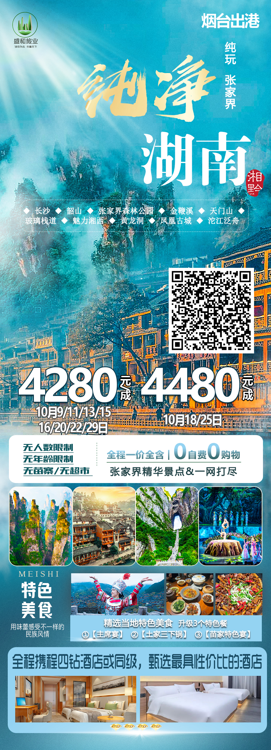 2、淡季如人数不够7人,此产品芙蓉镇住宿刚调整为张家界连住两晚