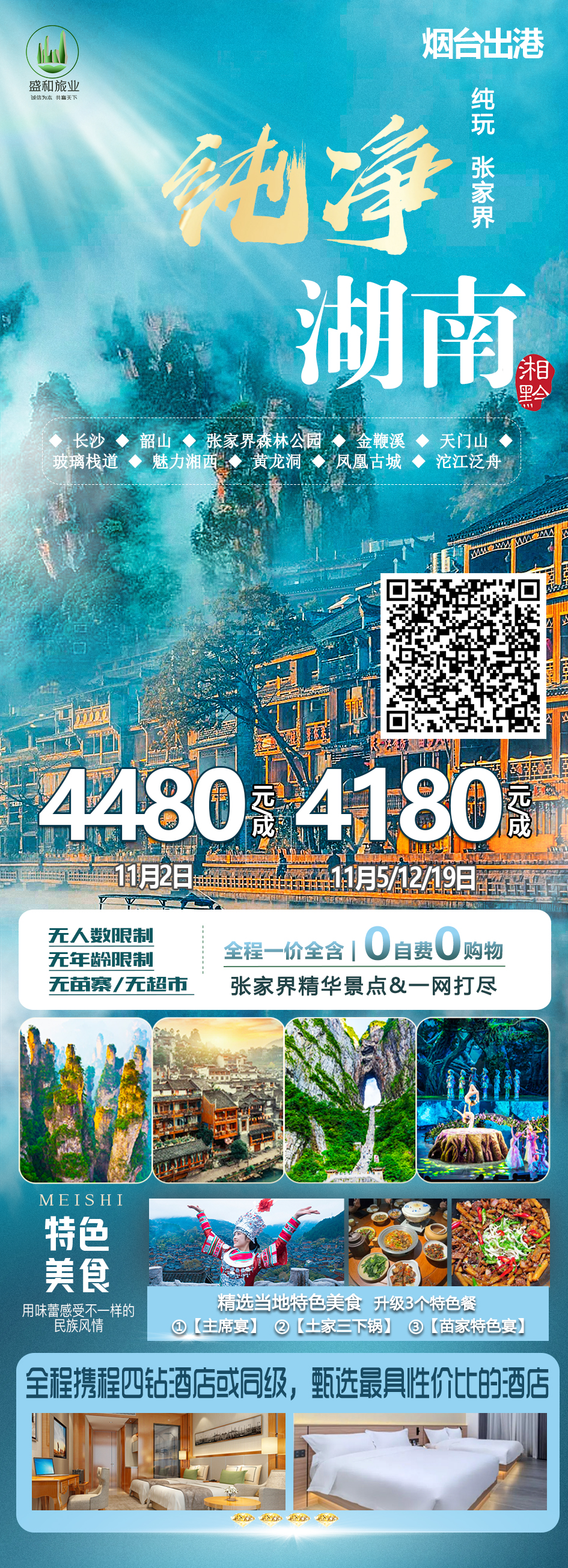2、淡季如人数不够7人,此产品芙蓉镇住宿刚调整为张家界连住两晚