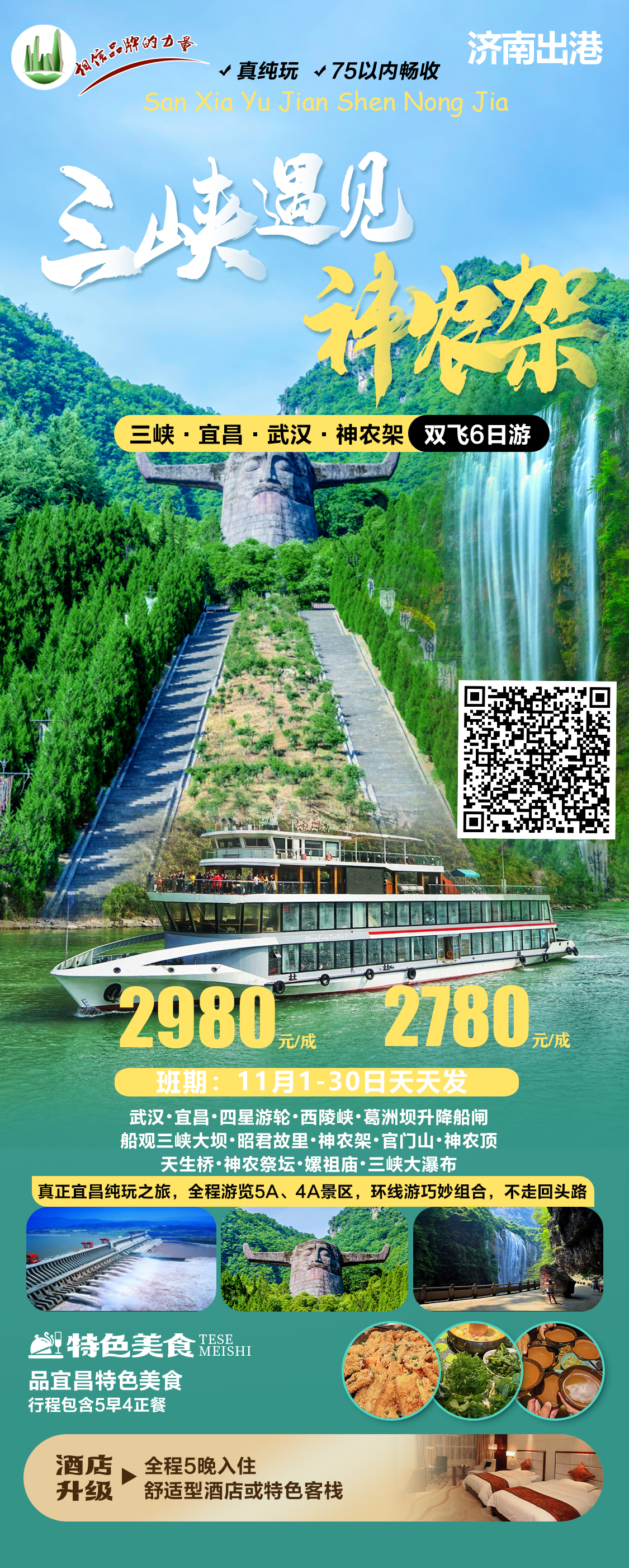 必须消费:599元/人=神农顶门票+天生桥门票+神农祭坛+官门山门票+昭君故里门票+三峡大瀑布门票+昭君故里景交+三峡大瀑布景交+车导综合服务费(报名参加此行程任何人群无优、无免、无退费,表示认可本套餐)四星游轮船票99元/人自愿自理,神农架景交60元/人必须自理;